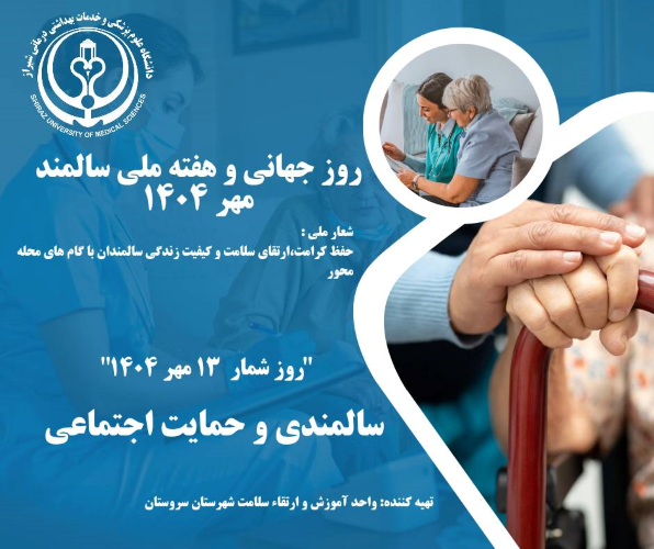 روز جهانی و هفته ملی سالمند مهر ۱۴۰۴ 1404/07/12 - کد خبر : 134492 - گروه خبری : اخبار,پیام سلامت - تعداد نظرات : 0 #روز شمار ۱۳مهر ۱۴۰۴ #سالمندی_و_حمایت_اجتماعی #واحد_آموزش_ارتقاء_سلامت_شهرستان_سروستان #واحد_بهداشت_خانواده