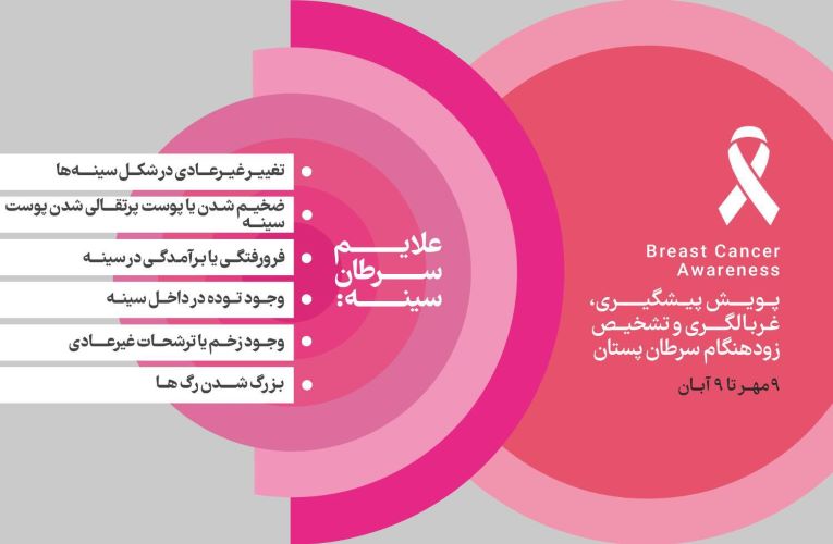 پویش پیشگیری، غربالگری و تشخیص زود هنگام سرطان پستان 1404/07/16 - کد خبر : 134517 - گروه خبری : اخبار,پیام سلامت - تعداد نظرات : 0 علایم سرطان سینه : تغییر غیر عادی در شکل سینه ها ضخیم شدن یا پوست پرتغالی شدن پوست سینه فرورفتگی یا برآمدگی در سینه وجود توده در داخل سینه وجود زخم یا ترشحات غیر عادی بزرگ شدن رگ ها